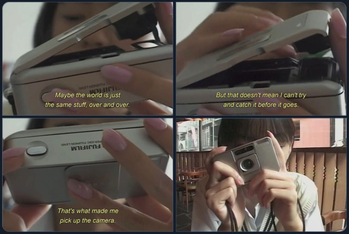 Estas cuatro capturas las tomó Irene (@neneando.bsky.social) en Bluesky y me las tuve que guardar porque me fascinaron. Salen de un documental llamado Love & Pop, dirigido por Hideaki Anno y dicen: «Quizás en el mundo se repiten siempre las mismas cosas una y otra vez/ Pero eso no quita que no pueda intentar capturarlas antes de que se vayan/ Eso es lo que me hizo coger la cámara.»